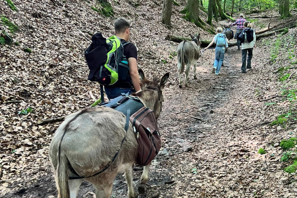 Begleitet uns im Juni auf einer wunderbaren Wanderung durch den Naturpark Teutoburger Wald nach Bielefeld.Auf unserer Strecke liegt unter anderem das Hermannsdenkmal und das Tönsberglager in Oerlinghausen. Zwischendurch wirst Du immer wieder die wunderbare Aussicht vom Hermannsweg genießen können.Nach drei Tagen werden wir unser Ziel, die Sparrenburg, erreichen. Eine sehr gute Kondition, funktionale Bekleidung und festes Schuhwerk sind unbedingt erforderlich. Am Tag werden wir ca. 15 - 20 km zurücklegen. Übernachten werden wir unter freiem Himmel im Zelt. Der Gepäcktransport erfolgt zwischen den Stationen mit dem PKW.In Bielefeld werden wir mit der Bahn zurück nach Horn-Bad Meinberg fahren. Die Esel werden aber mit dem Anhänger transportiert...Eine gute Verpflegung und der Rücktransfer ist im Preis bereits enthalten.Solltest Du kein Zelt haben, kannst Du es bei uns mieten. So brauchst Du legendlich Schlafsack und Isomatte.